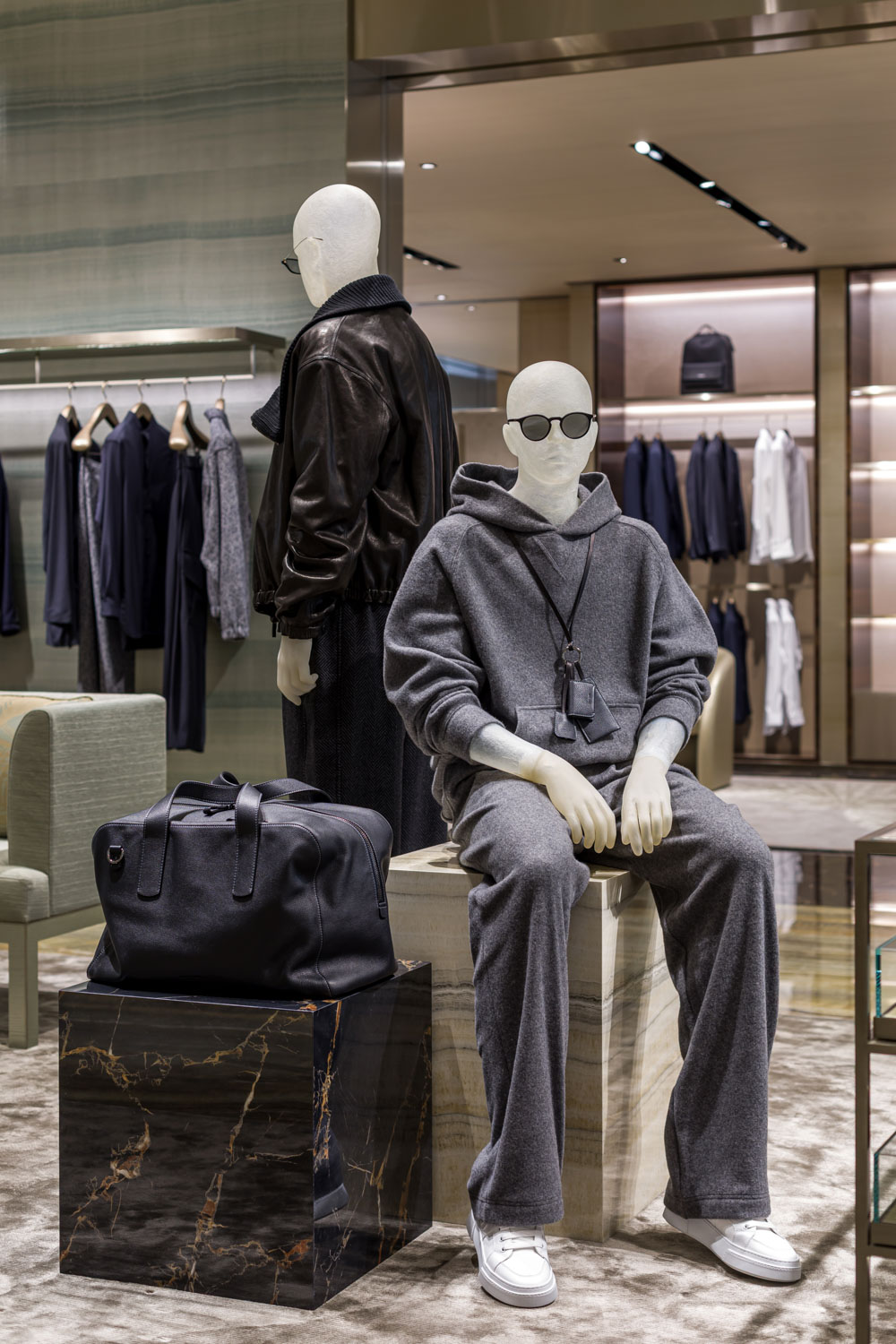 This new Emporium boutique carries the brand’s signature refinement into a unique curved spatial layout — a departure from the usual rectilinear store format. The geometry introduces subtle movement, challenging the balance and symmetry that often define retail photography.